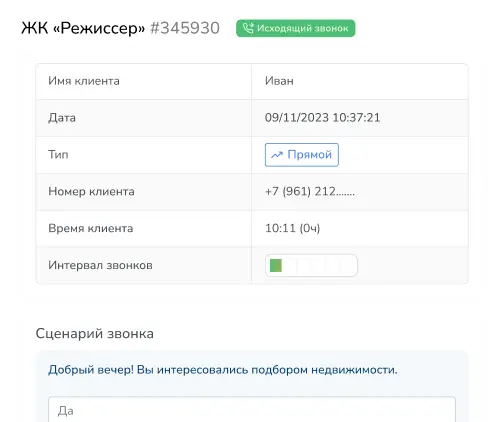 Результат:- – Первый контакт с лидом уже через 10 секунд.